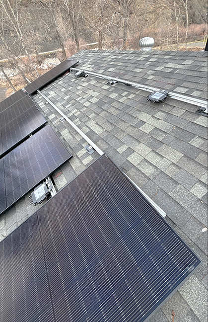We designed and installed a 12 kW grid-connected system using 24 high-efficiency Longi 500W panels. The array was mounted on a sloped asphalt shingle roof, with careful planning to work within the home’s mixed rafter and truss structure while minimizing any disruption to the finished interior.